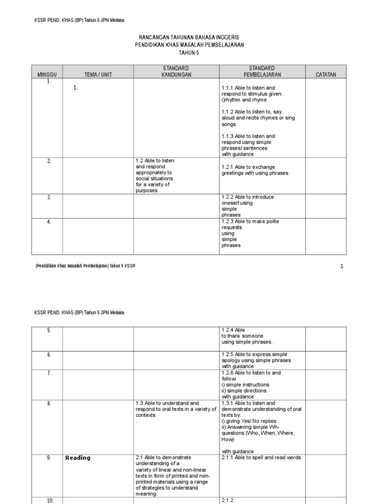 Rpt Bahasa Inggeris Pendidikan Khas Bp Tahun 5 Pdf Human Communication Writing