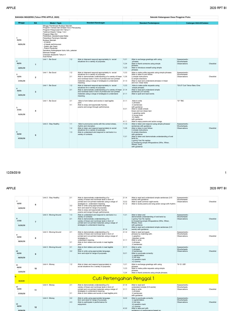 Catch Up Plan Bahasa Inggeris Tahun 1 Hingga 6 Sumber Pendidikan